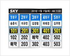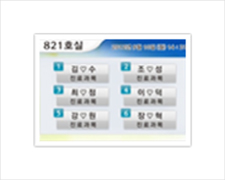 각 병동의 병실입구 벽면에 디지털 디스플레이 장비를 설치하여 입원환자의 병실위치, 주치의, 담당간호사 및 입실환자에 대한 전반적인 현황을 파악할 수 있는 정보를 제공하는 솔루션입니다.
